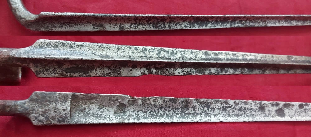 Загальна довжина 44,8 см, довжина рукава 6,8 см, ширина леза 22,6 мм, товщина леза 10,5 мм, діаметр рукава близько 22 мм.