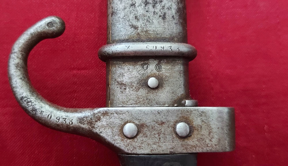 предметом продажу є французький Bayonet WZ. 1892 - Бертьє. Байонет і піхва мають постійні числа 60938 .