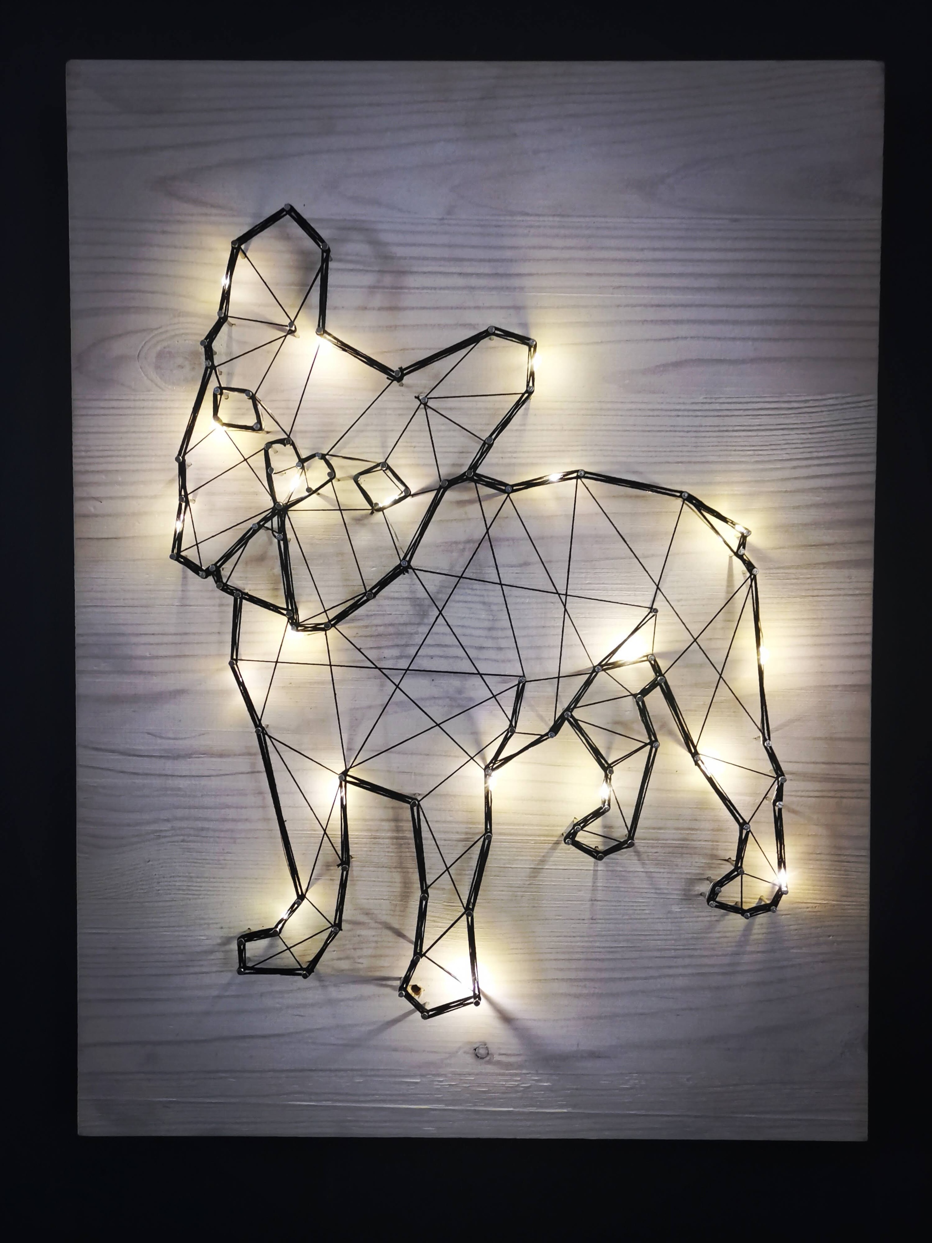 РОЗПИС на дерев'яній дошці в техніці String art, зі світлодіодним підсвічуванням