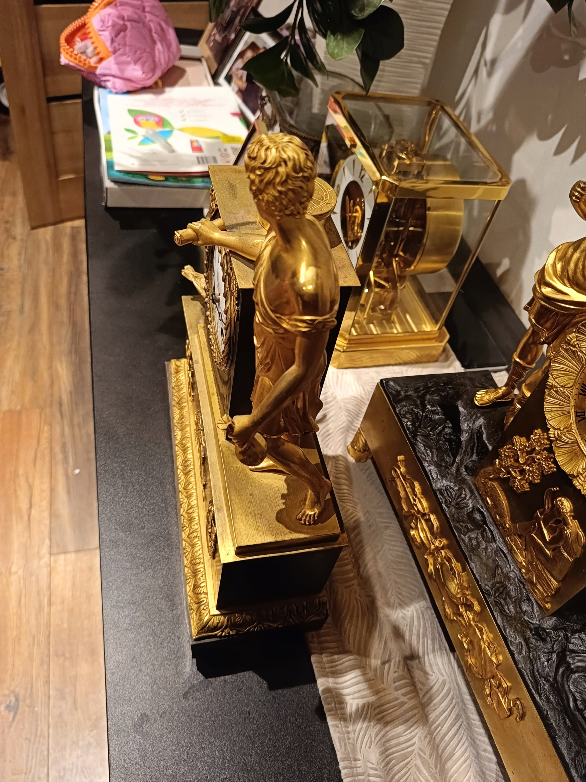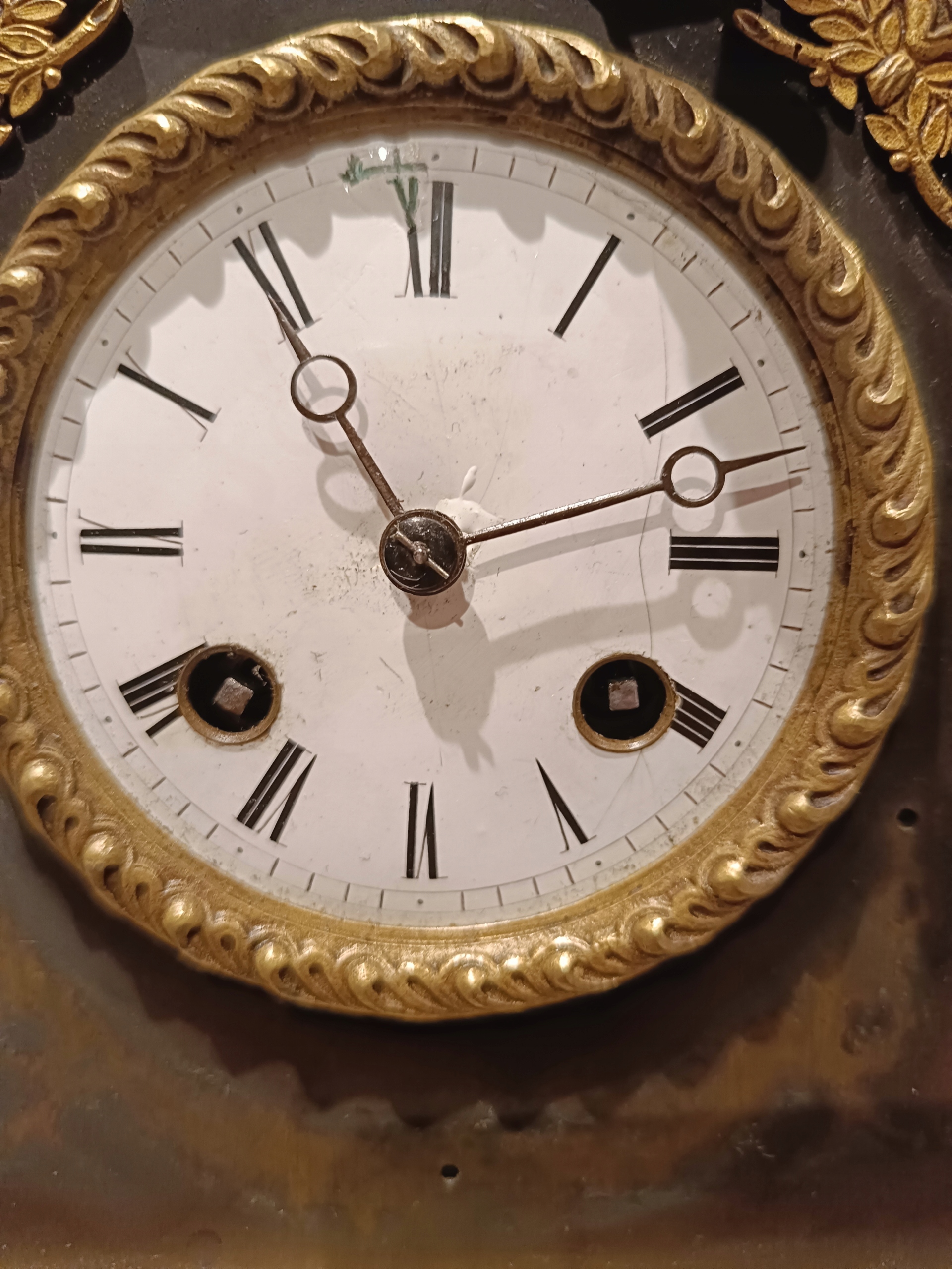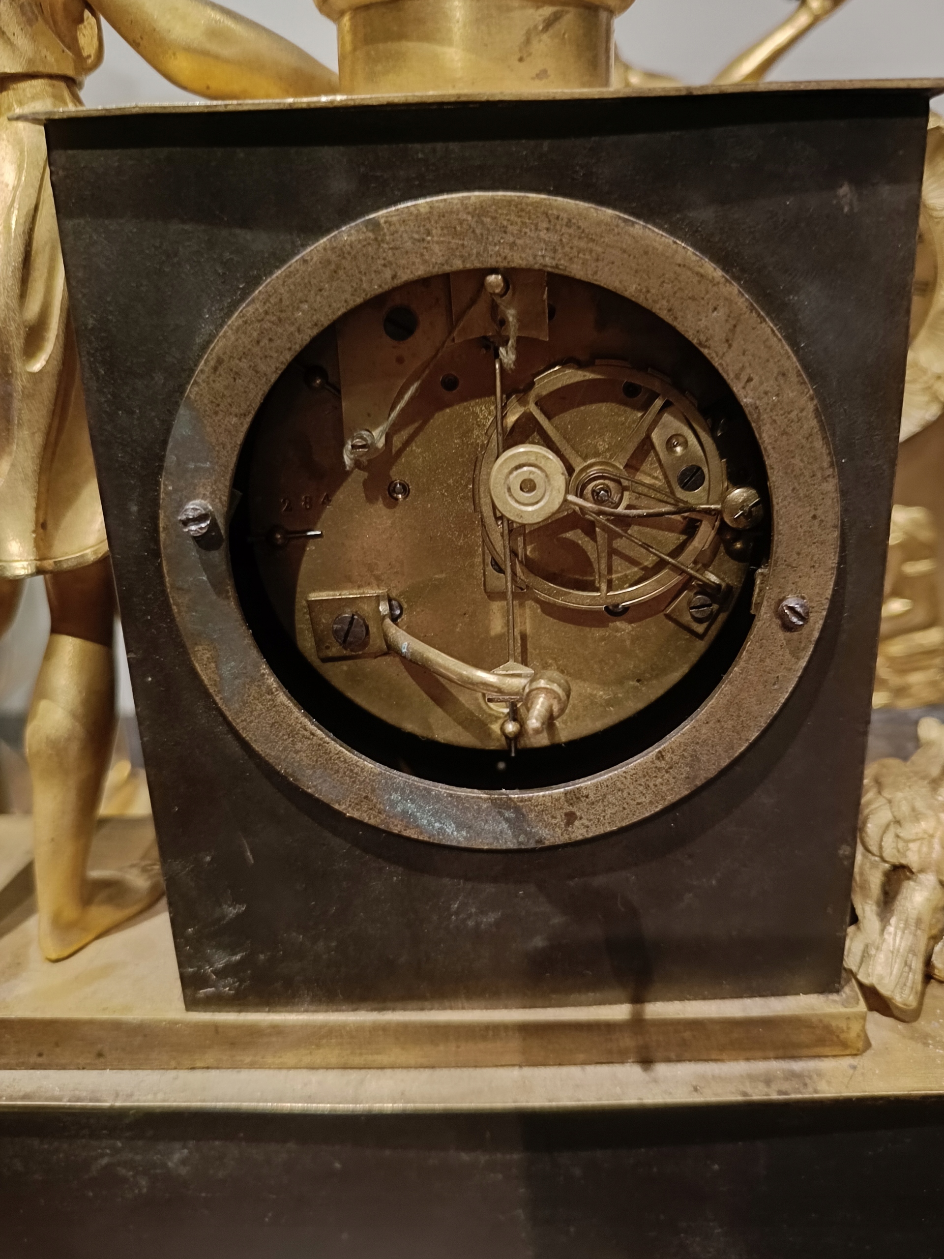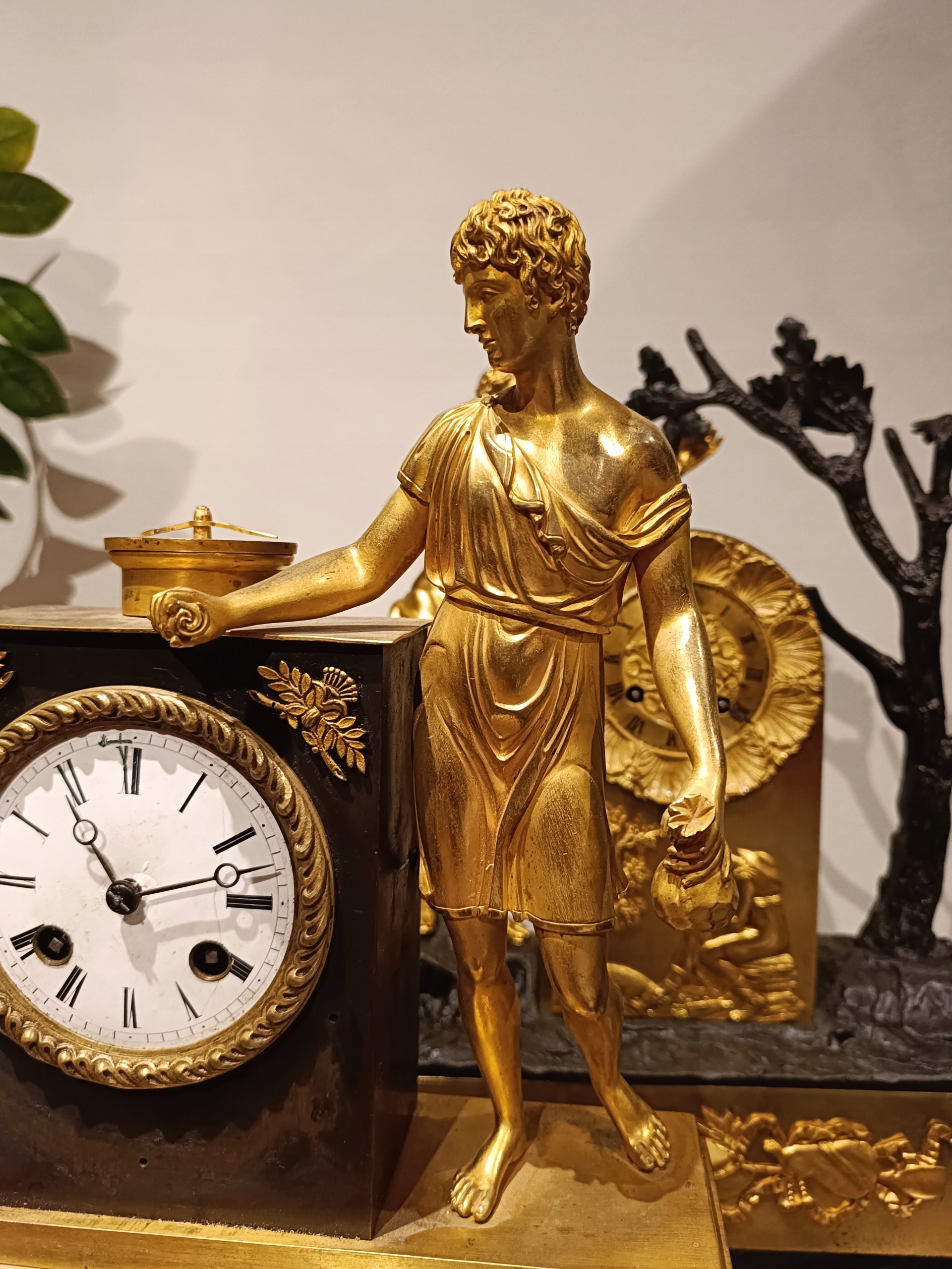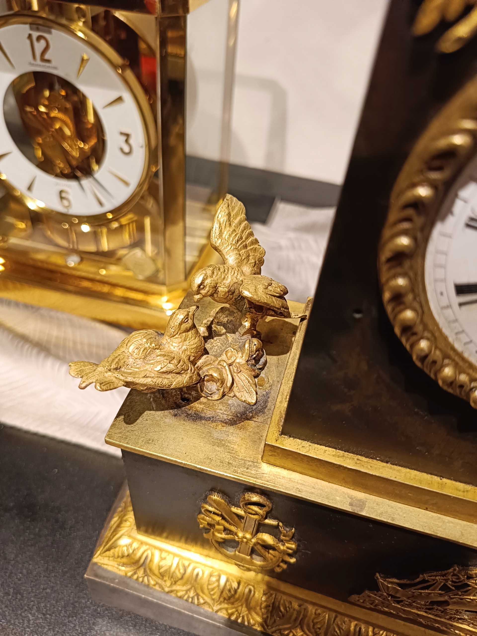 Продам дуже гарний камінний годинник у стилі ампір. Є запитання - 518+636-752. Походження: Франція - перша половина 19 століття. Годинник з позолоченої та патинованої бронзи. Механізм працює ідеально, укомплектований та в хорошому стані, відбиває години та півгодини. В комплект входить ключ-маятник (не оригінал) і дзвіночок. Циферблат механізму в відносно хорошому стані - був невеликий скол на положенні 12 годин. Відсутня прикраса під механізмом. Ніжки не оригінальні. Один можна виготовити на токарному верстаті. Пташки ніби з іншого годинника, хоча я купив годинник разом з ними.