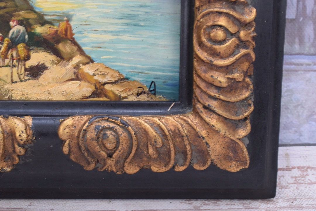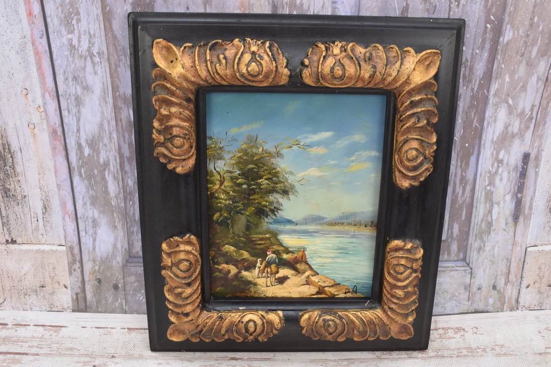 Французький сільський пейзаж Річка - чудова картина маслом - чорно-золота рамка