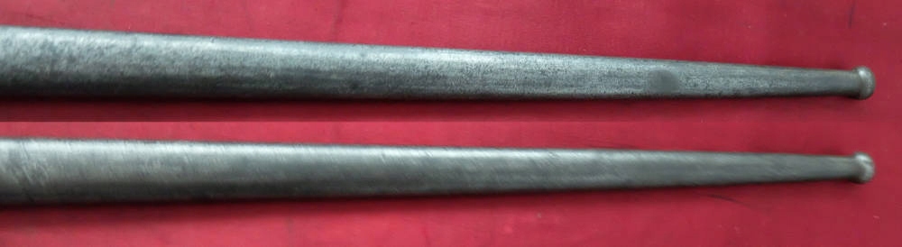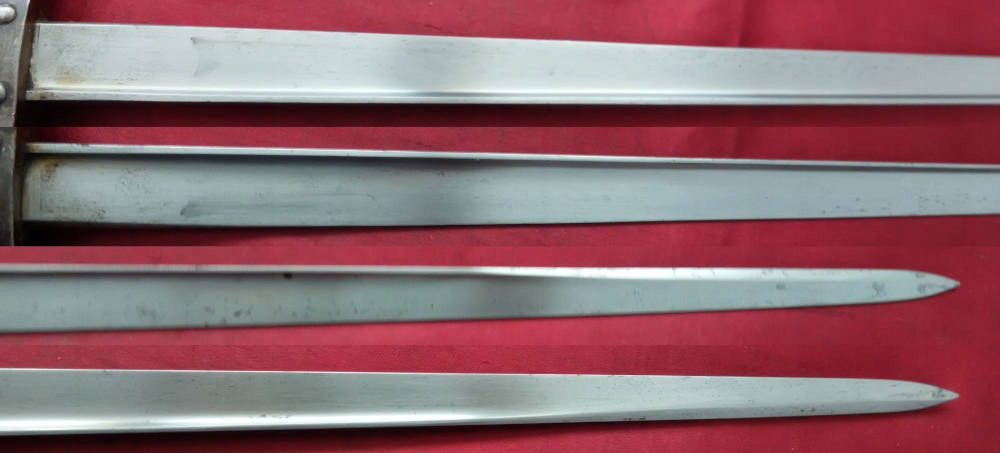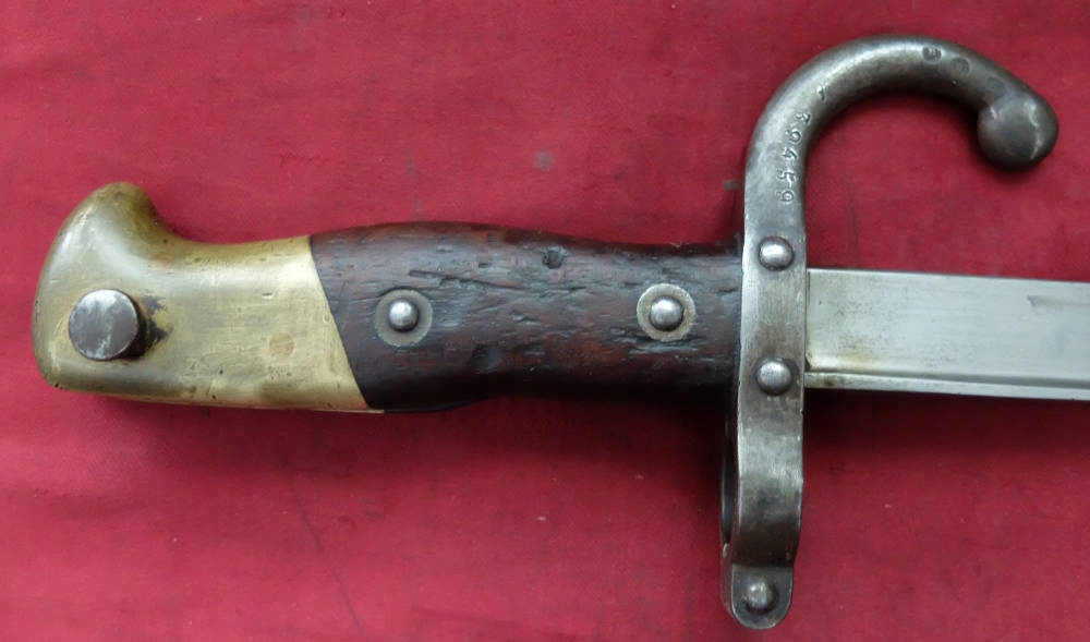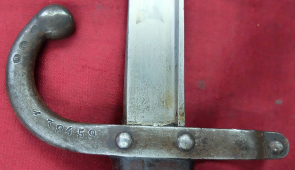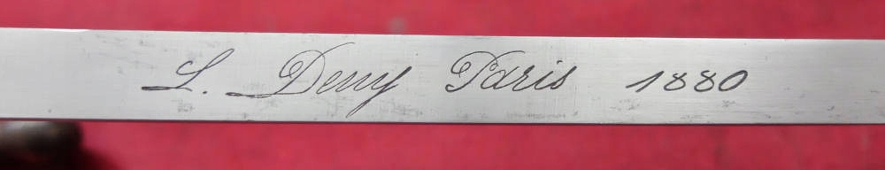 Екземпляр, який видно на фотографіях, дуже добре зберігся. Клинок незаточений, незаточений, дуже добре зберігся. На тильній стороні клинка зберігся напис, приватне виготовленняL.Deny Paris, рік виготовлення 1880. Поперечина має французьке маркування та номер 39459. Накладки на ручки дерев'яні, оригінальні. Головка латунна. Багнетний замок працює.