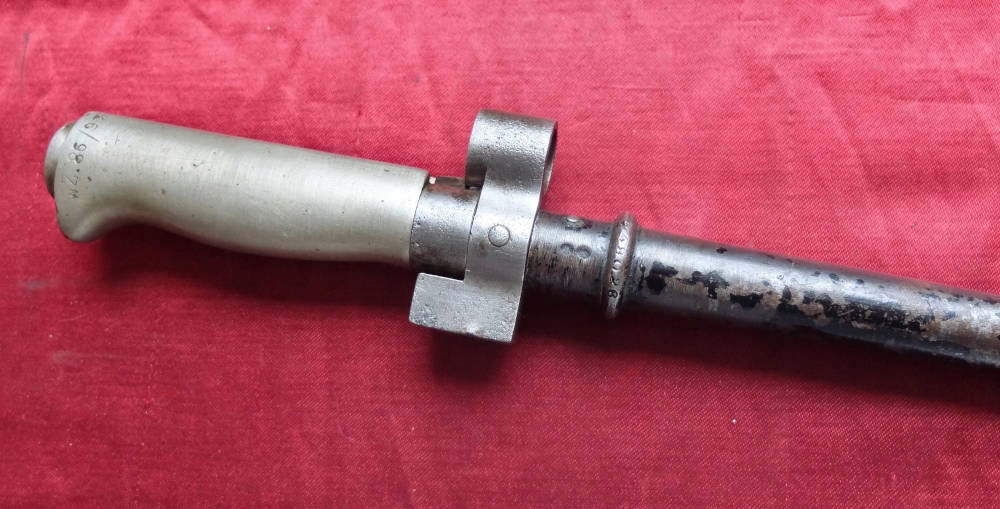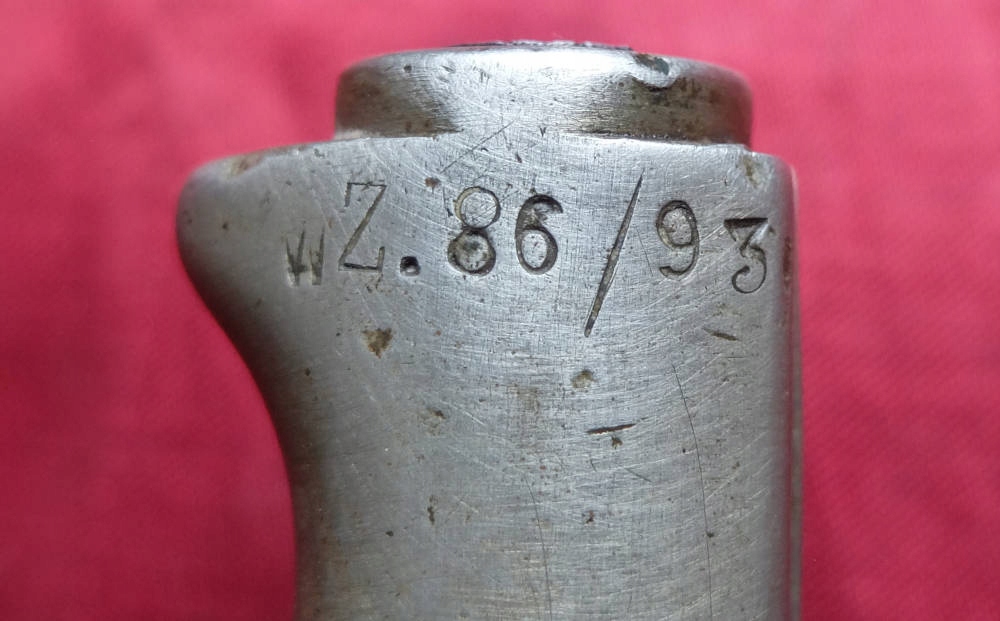Польський візерунок вибитий на голові, тобто WZ.86/93. Примірник, який видно на фото, дуже добре зберігся. Клинок незаточений, незаточений. На краю леза є позначка C & P. Ручка мельхіорова, байонетний замок справний. Номер D 793.. на руків'ї.