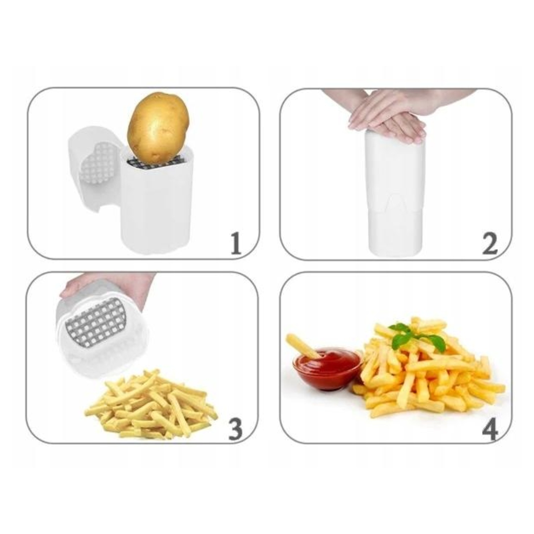Щоб наш слайсер нарізав нашу картоплю, просто вставте її всередину та сильно натисніть. Леза легко розділять його на частини. Пристрій дуже легко чистити. Просто помийте їх під проточною водою із засобом для миття посуду. Не чекайте більше та замовляйте сьогодні за цією привабливою ціною!