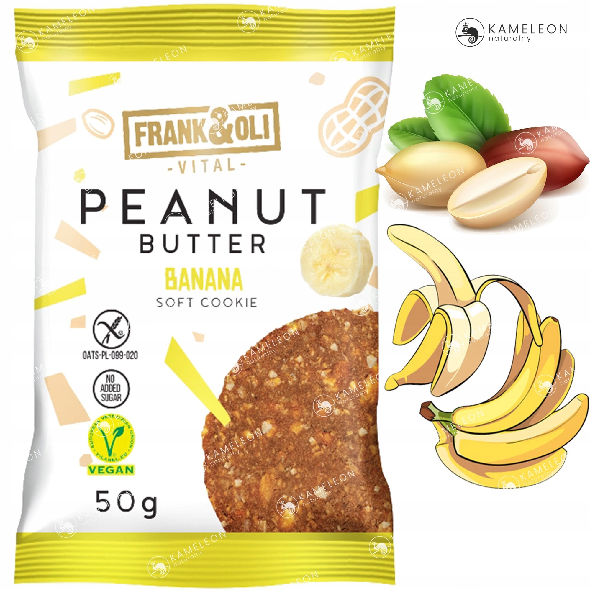 арахісова паста 35%, клітковина кореня цикорію, арахісове борошно 12%, вівсяні пластівці без глютену, арахіс 9%, сушене бананове пюре 4%, емульгатор : лецитини з насіння ріпаку, гімалайська сіль, натуральний банановий ароматизатор 0,3%.