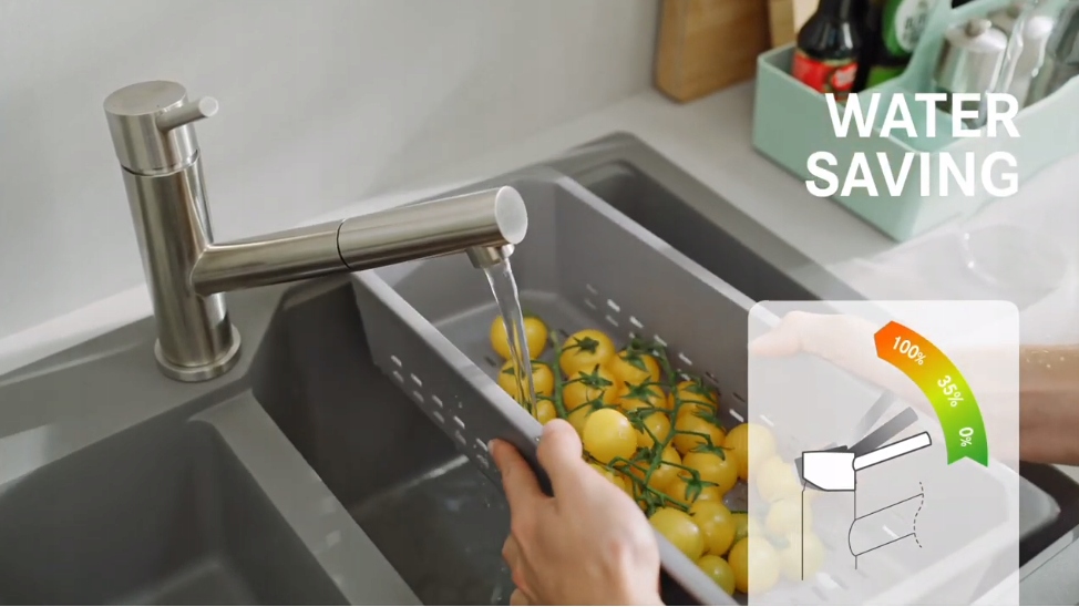 Технологія економії води: двоступенева головка допомагає зменшити споживання води до 50%, забезпечуючи оптимальний потік води. При активації важіль змішувача відкривається наполовину, природним чином обмежуючи потік води. Якщо нам потрібен більший потік, нахиліть важіль сильніше, і головка повністю відкриється.