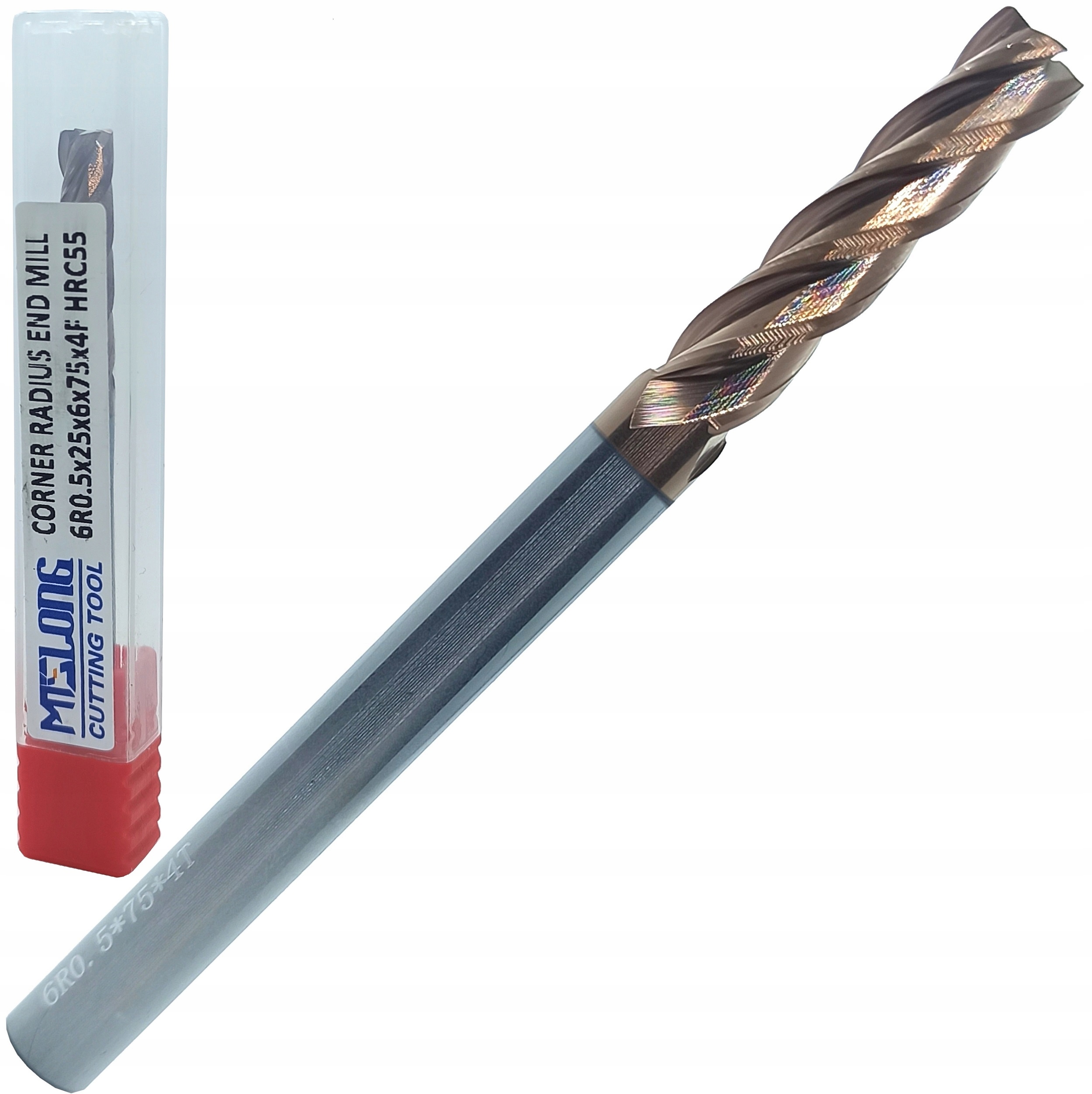 FREZ TORUSOWY VHM fi 6 R0,5 55HRC 75L DŁUGI MTS PROMIENIOWY