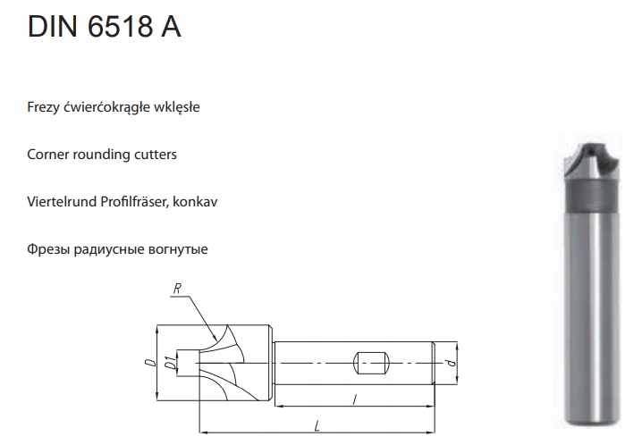 ФРЕЗА ЧЕТВЕРТЬКРУГЛА УВОГУГНАТА DIN 6518 A R20 HSS ДНО