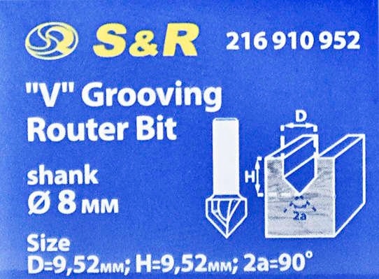 Фреза по дереву S&R, тип V 90° 9,52x9,52 мм, діаметр хвостовика 8 мм.