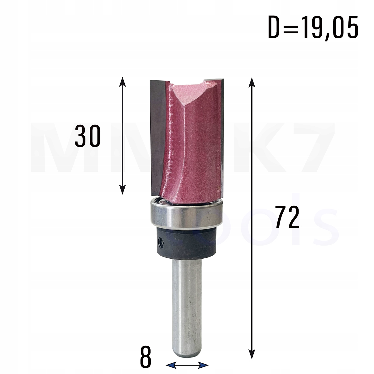 Фреза пряма по дереву 2Р | оправка 8мм | fi 19,05 x 30 | VHM | з підшипником