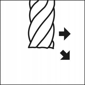 Застосування: для периферійного фрезерування, фрезерування кромок і дуже точної обробки. Висока якість поверхні завдяки спіральному куту 45°, що забезпечує м'яке різання. Запобігає утворенню задирок на ріжучих кромках. Інструмент для універсального використання.