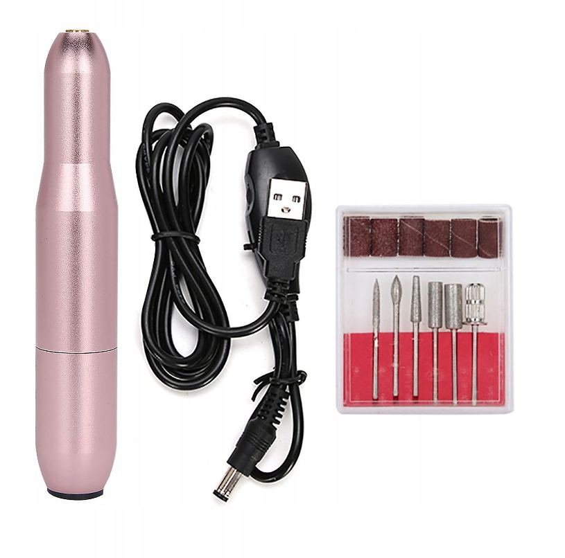 Набір включає: фрезер (рожевий), кабель живлення та набір фрез