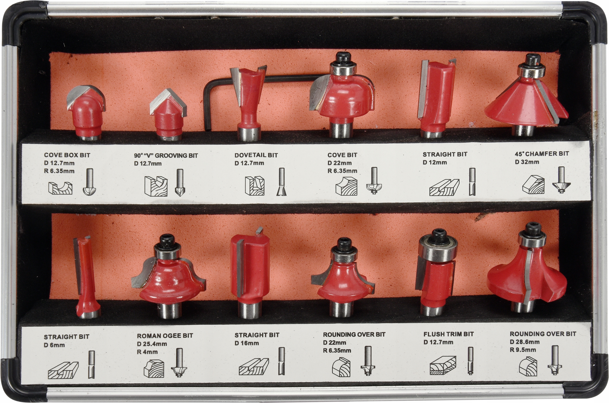 - набір включає шість різців із підшипником, який полегшує наведення інструменту