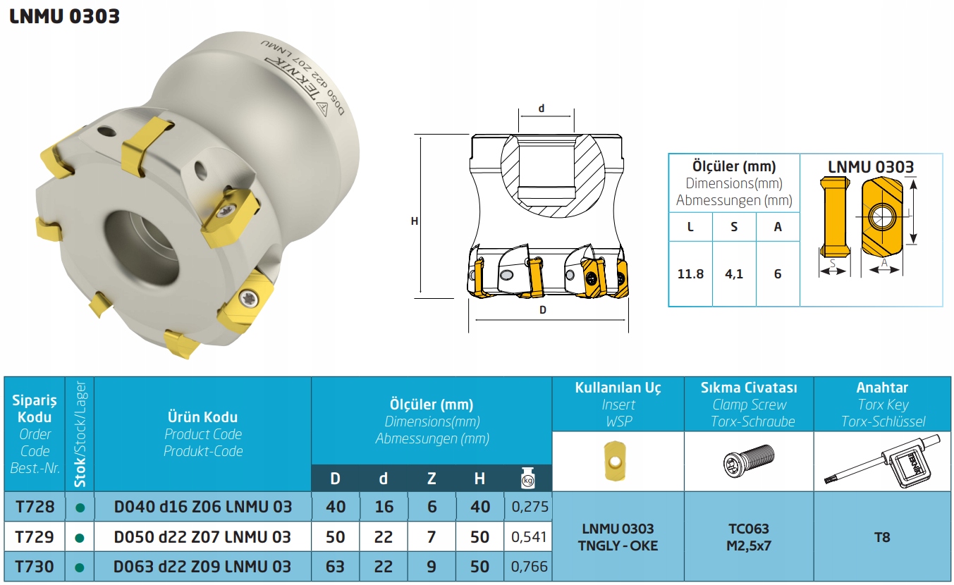 ФРЕЗЕРНА ГОЛОВКА FI 40x16 Z6 НА LNMU 0303 T728-1 З CHŁ TEKNIK