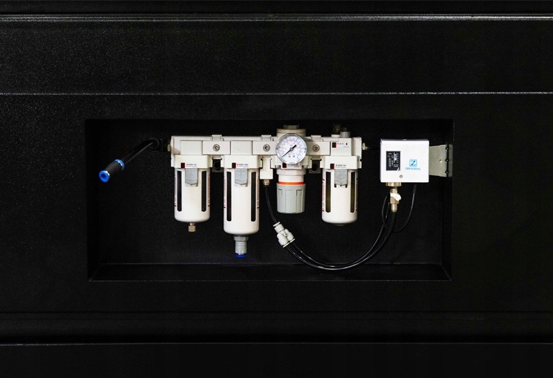 - Пенуматично переміщувана ніжка для відсмоктування, розташована біля шпинделя, дозволяє підключати будь-який відсмоктувач стружки система, підтримуючи чисту обробку, безпеку та водночас зберігаючи точність роботи < /ul>