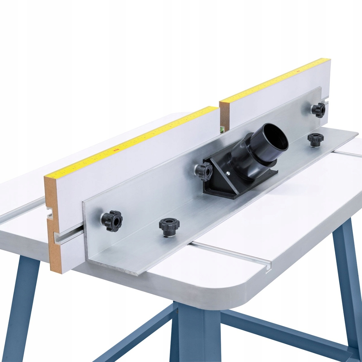 - Включно із стійким до кручення фрезерним упором із розмірними шкалами та Т-подібними пазами (8 мм)