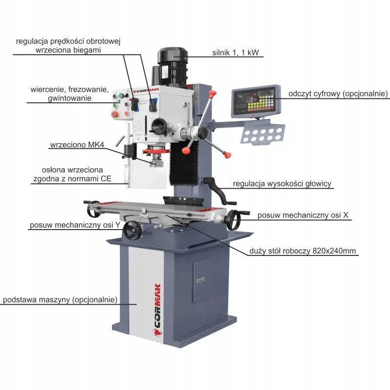 ФРЕЗЕРНИЙ СВЕРДЛИЛЬНИЙ ВЕРСТАТ ZX7045 820X240 1.5HP + ОСНОВА + ФРЕЗЕРНИЙ 80 + СВЕРДОТРИМ.