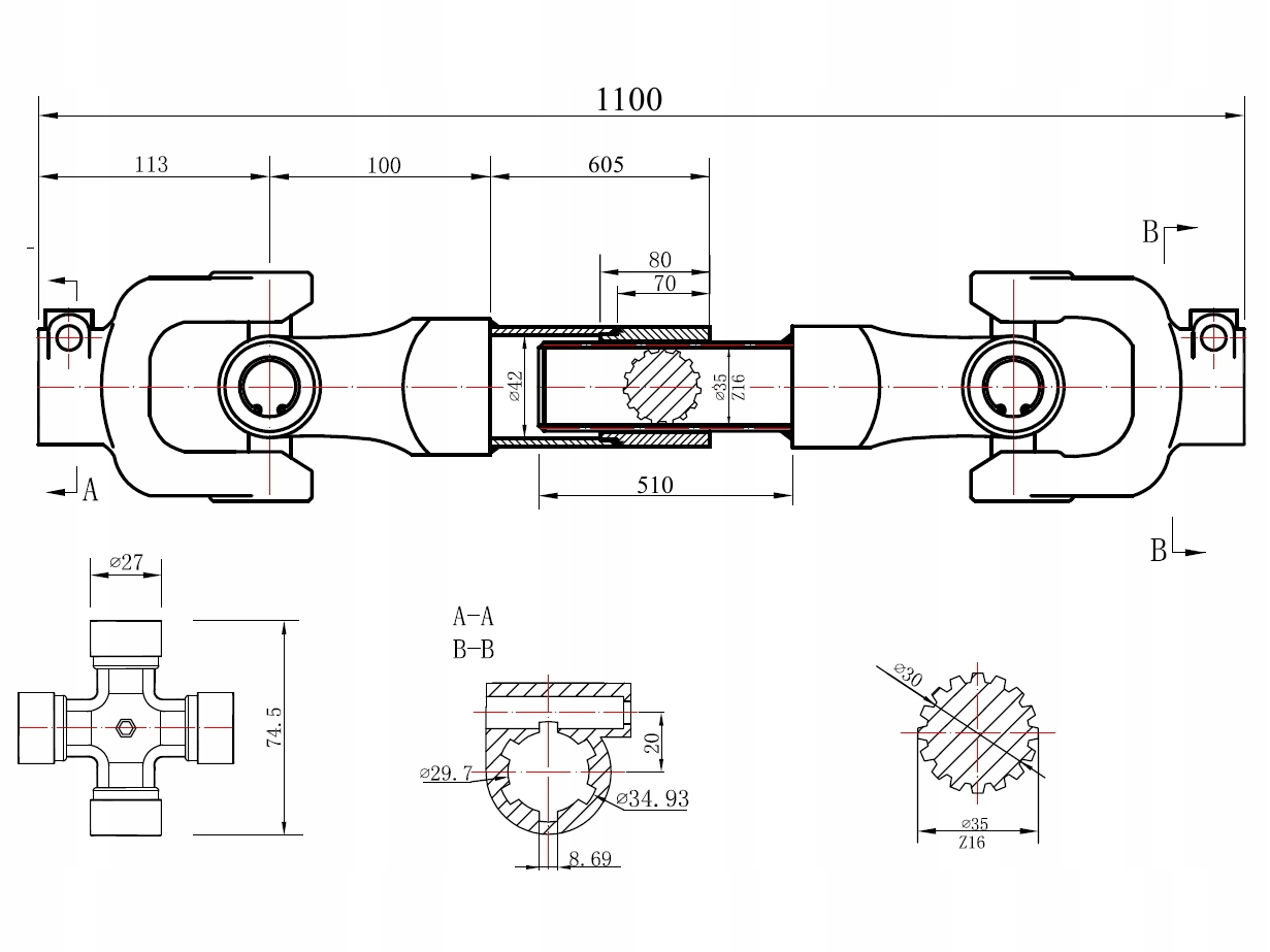 Стандартний розмір дозволяє адаптувати вал до багатьох моделей машин і тракторів без необхідності змінювати наконечники