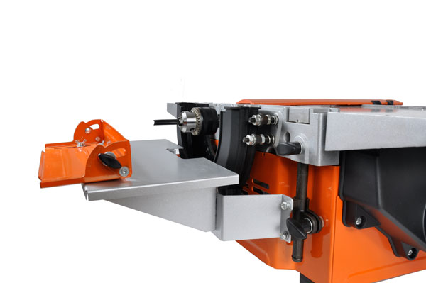 Верстат має дві стільниці, у тому числі одну рухливу, що регулюється вгору та вниз, та окрему стільницю для пилку.