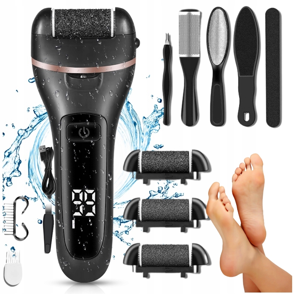 Користуватися пристроєм неймовірно просто. Вимийте ноги або замочіть їх у гарячій воді приблизно на 10 хвилин, а потім висушіть. Виберіть відповідну головку та швидкість і обережно видаліть ороговілий епідерміс.