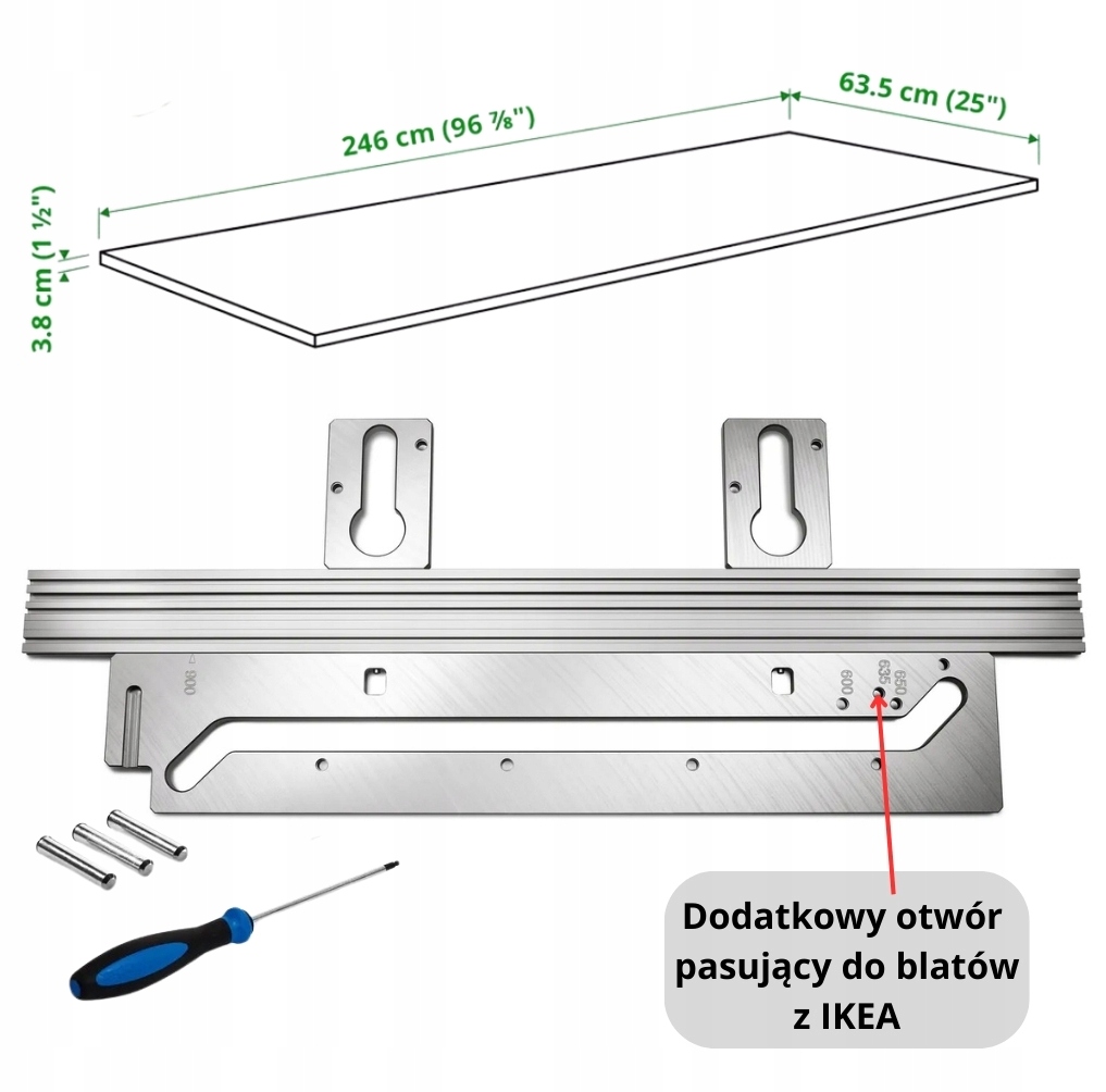 ✅ Шаблон має додатковий отвір, тому він підходить для стільниці IKEA шириною 635 см.