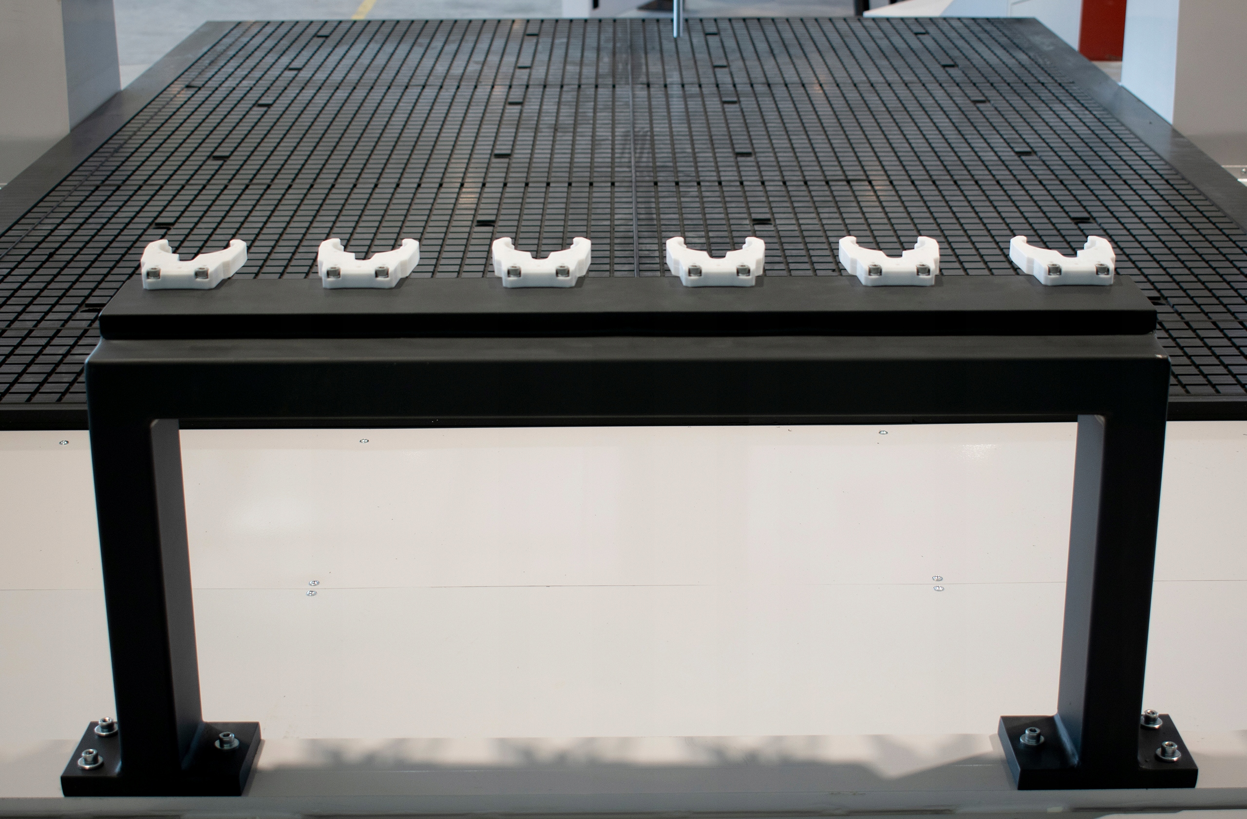 Вакуумний робочий стіл є стандартним для цих пристроїв. Також можлива установка гібридного столу.