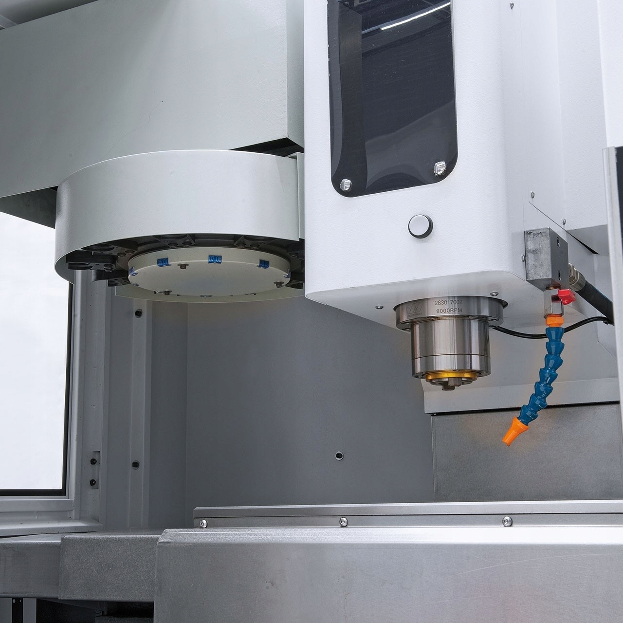 - Стійка жорстка лита рама забезпечує тиху роботу та оптимальну продуктивність фрезерування