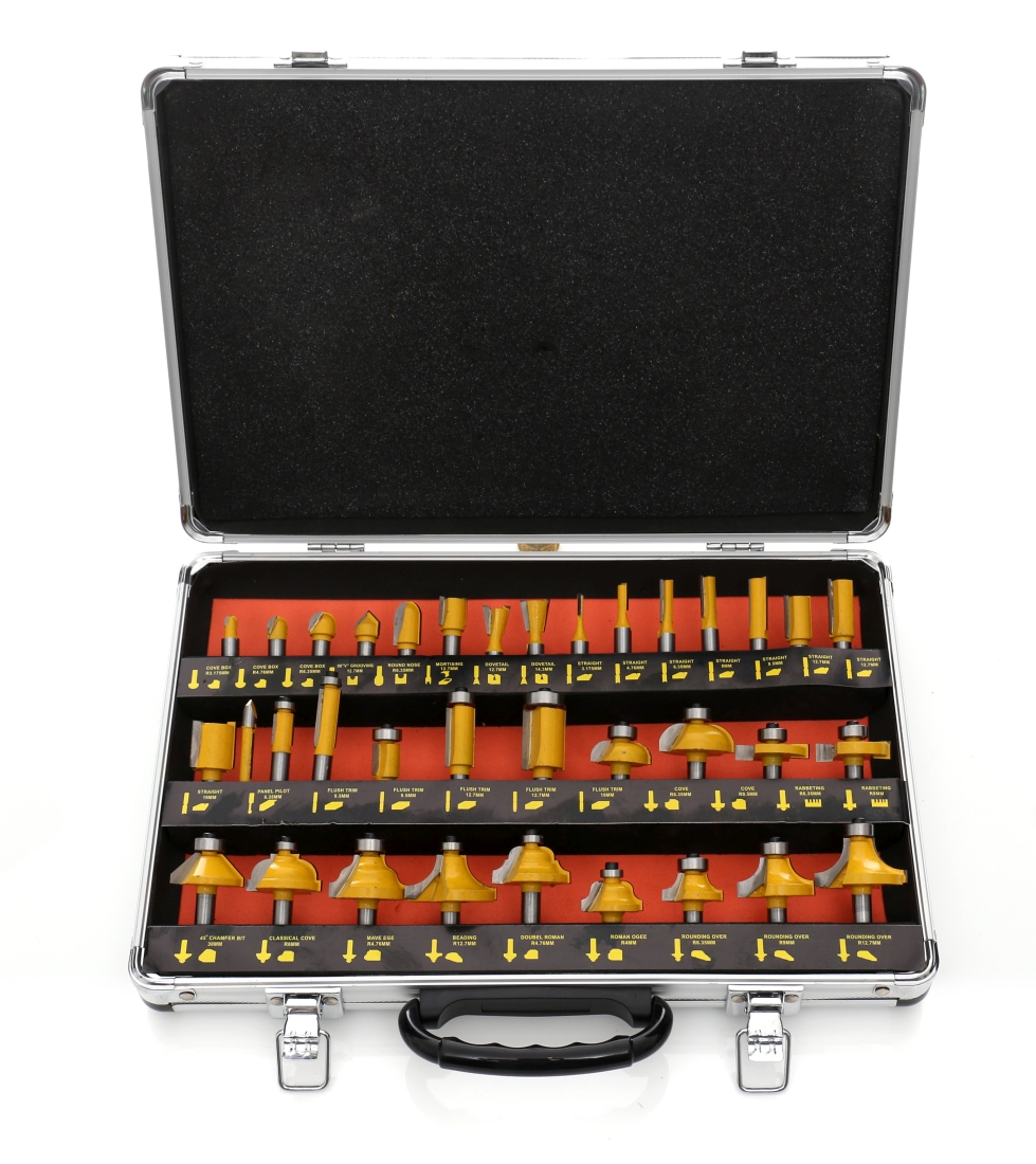 Вибрані фрези вони мають підшипники, які зменшують тертя, і дуже тверде лезо з швидкорізальної сталіHSS. Набір куттерів знаходиться в професійній валізі, кожен куттер має своє підписане місце. Незамінний набір для кожної столярної майстерні та багато іншого.