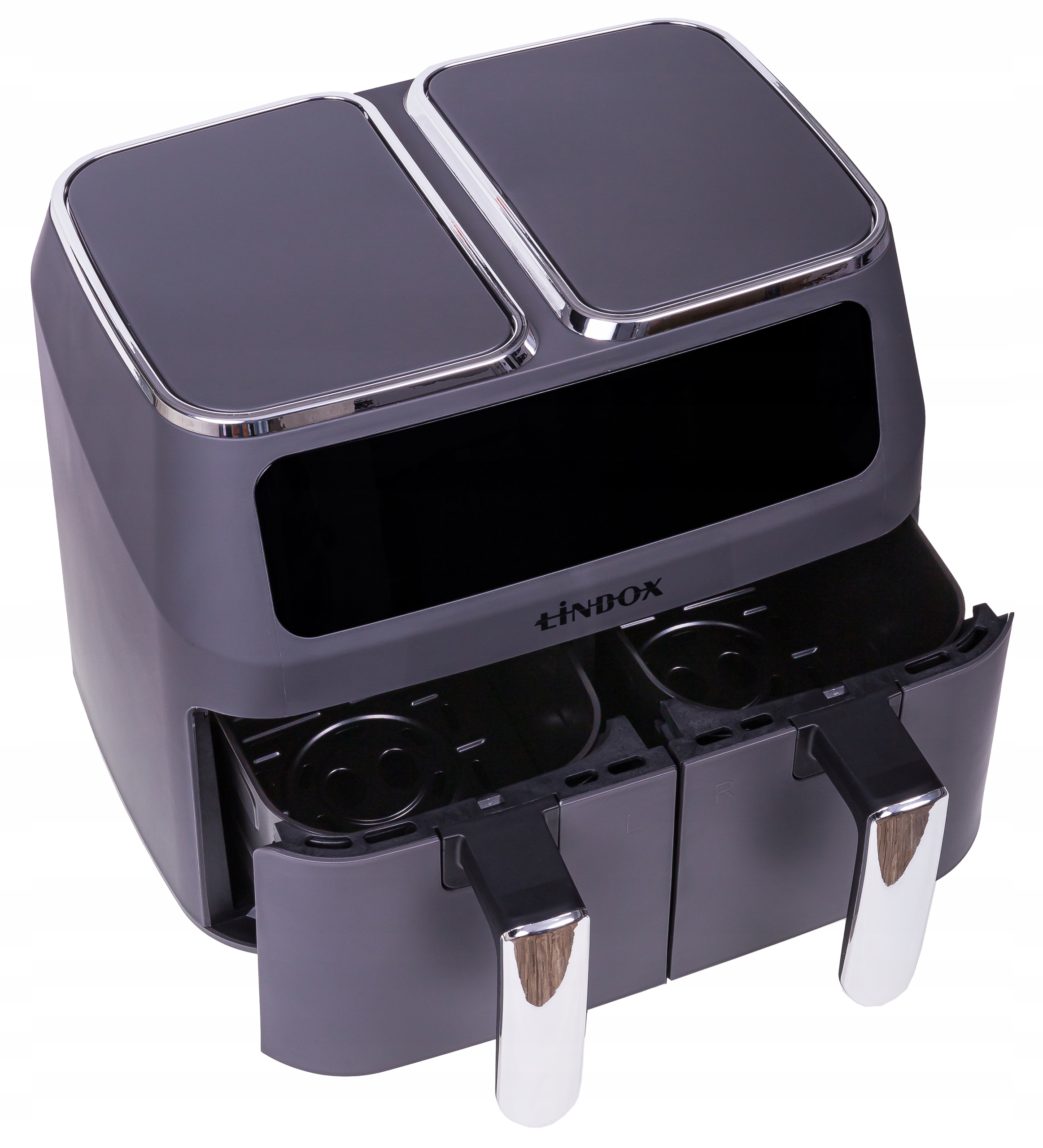 Фритюрниця має 2 незалежні кошики. Завдяки цьому ми можемо готувати 2 різних продукти одночасно. Наприклад, один тримає картоплю фрі, а інший тримає крила або гомілки.
