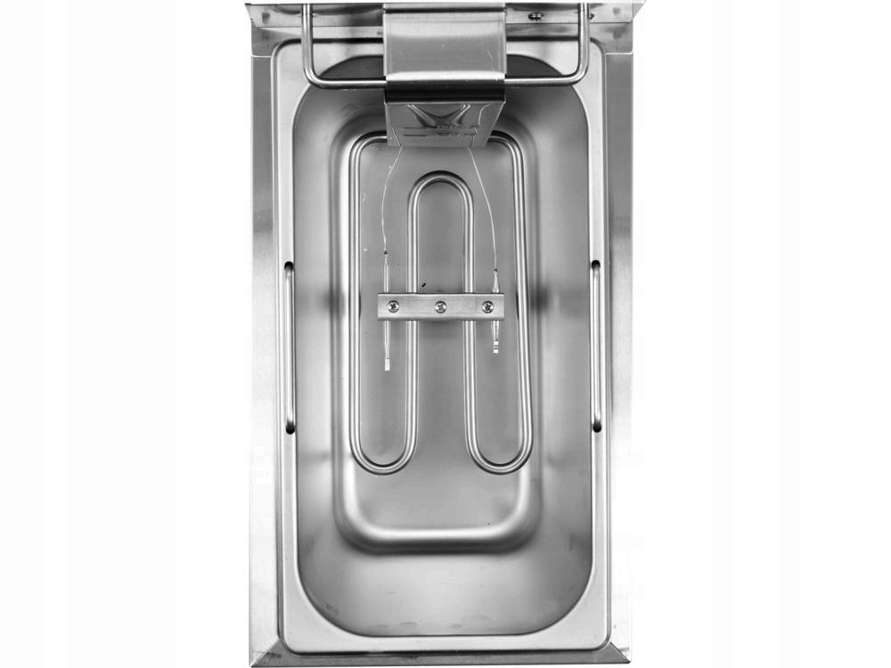 Нагрівач потужністю 2,0 кВт управляється потенціометром, розташований на панелі управління. Робочу температуру можна встановити в діапазоні 60~200℃. Встановлений захищений від бризок вимикач дозволяє вимкнути пристрій, не від'єднуючи кабель живлення від мережі. Крім того, панель управління має захисну кришку з дуже міцного полікарбонату, яка захищає панель від бризок олії під час смаження. Завдяки цьому утримувати фритюрницю в чистоті набагато легше.Знімний нагрівач можна повісити на спеціальний тримач у такому положенні, коли масло, що капає, повертається в резервуар. Фритюрниця має додаткову функцію безпеки, яка автоматично вимикає нагрівач, коли вона виймається з бака. Додатковий захист захищає його від перегріву при температурах вище 260 ℃.