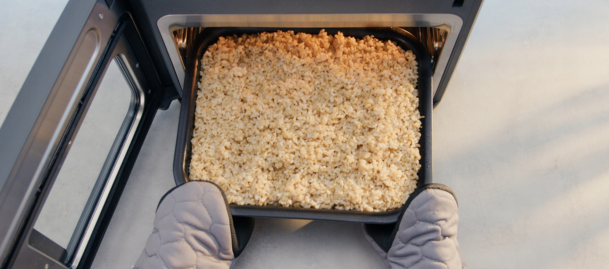 Спостерігайте за приготуванням основної страви та гарнірів через зручне оглядове віконце у дверях. Відкрийте дверцята, щоб призупинити приготування, швидко перемішайте їжу або скористайтеся режимом «Обсмажити/Пасерувати», щоб ідеально завершити смаження м’яса та овочів.