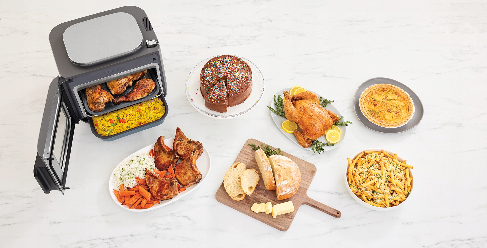 Використовуйте функцію Air Fry для отримання соковитих і хрустких курячих нагетсів або використовуйте програму RICE/PASTA для приготування ситних макаронних запіканок із часниковим хлібом