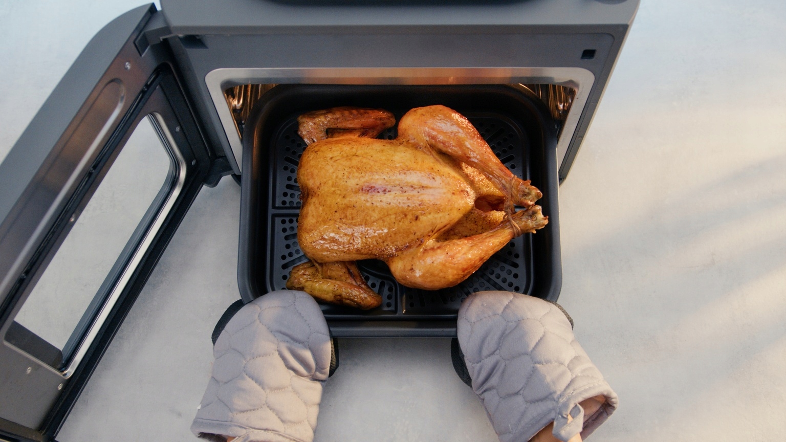 - Тарілка для хрусткої хрусткої скоринки – Ця тарілка була продумано розроблена, щоб підійти до комбінованої сковороди, дозволяючи повітрю циркулювати та рівномірно хрусткувати картоплю фрі та інше. улюблені страви .