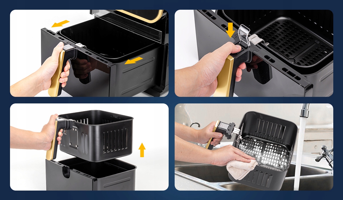 Складна конструкція, знімний кошик для смаження, простий у використанні.