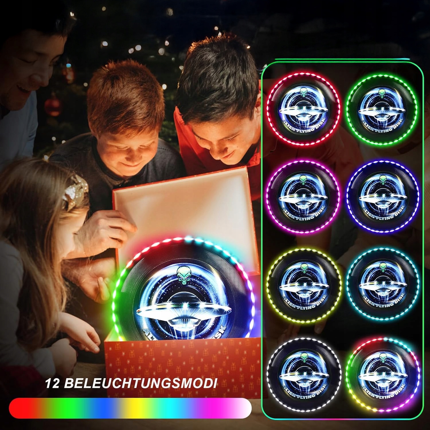 Унікальний літаючий світлодіодний диск - це революційна іграшка, яка порадує і дітей, і дорослих! Завдяки 12 динамічним світловим ефектам і 38 світлодіодам диск чудово видно навіть у темряві, забезпечуючи безпечне та захоплююче задоволення в будь-який час доби. ✨