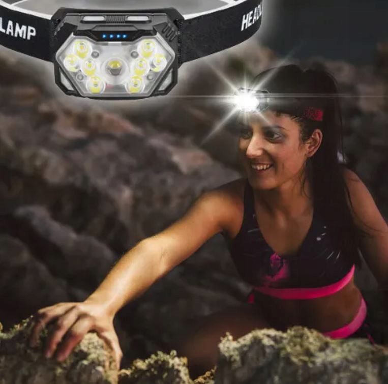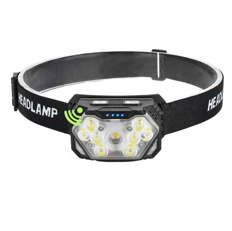 LATARKA CZOŁOWA CZOŁÓWKA 9 LED2000LM MOCNA AKUMULATOROWA CZUJNIK RUCHU USB