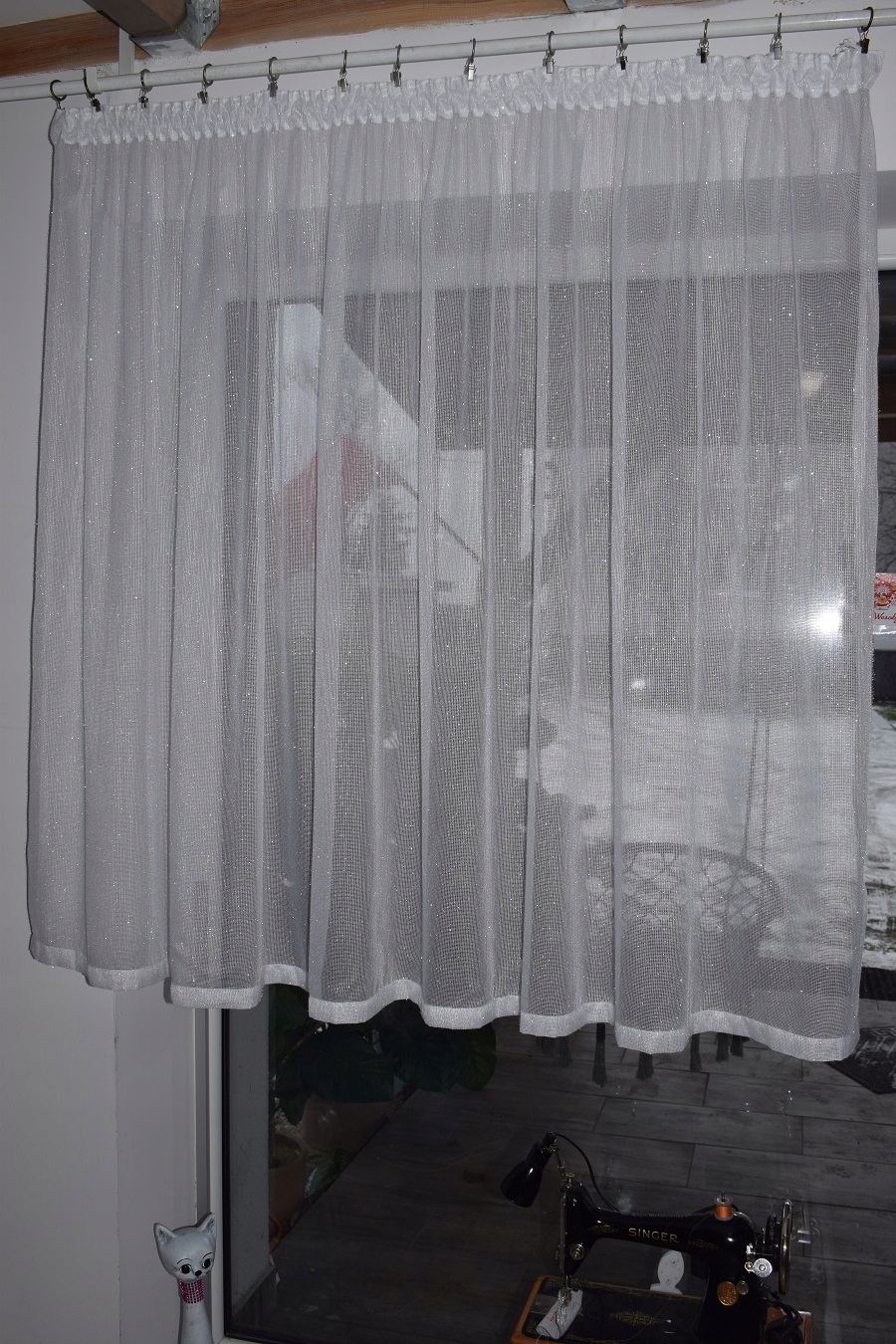 Штора має дуже ексклюзивний колір білої тканини з ворсом - Raszlow marquisette. Останній хіт у дизайні вікон, тут за дуже доступною ціною, включаючи послуги пошиття