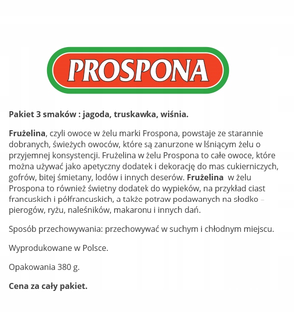 Prospona є лідером серед польських виробників фруктових консервів, присутніх на ринках усього світу. Понад 30 років натуральні фруктові продукти поєднують традиції та інновації. Наші продукти, доступні в широкому асортименті смаків і кольорів, користуються популярністю та користуються довірою серед роздрібних клієнтів, які цінують їх за високу стабільну якість і чудовий смак.