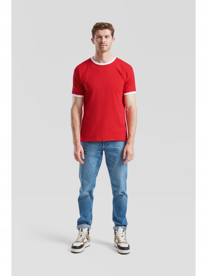 FRUIT T-Shirt RINGER Футболка з вентилятором з коротким рукавом унісекс WHITE RED Size L
