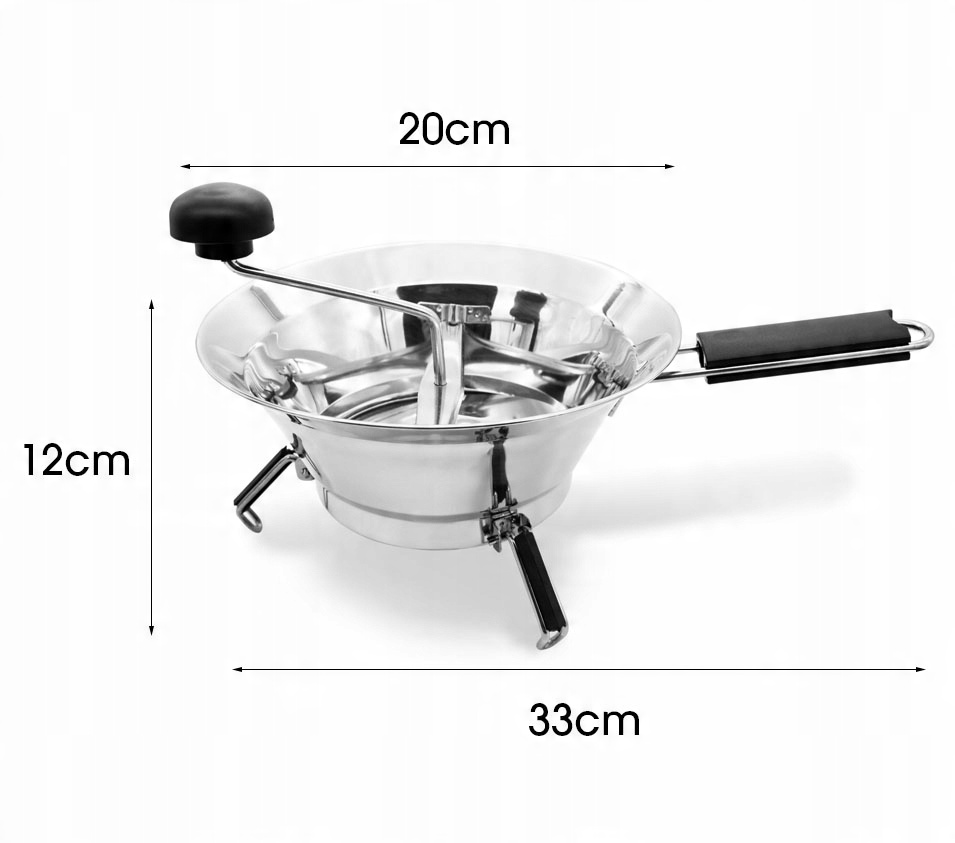 Овочеве та фруктове пюре виготовлене з високоякісної сталі. Має два змінних сита з різним діаметром осередків. Продукт 100% безпечний, призначений для контакту з харчовими продуктами. Матеріал робить його легким, що робить використання склоочисника легким і зручним.Ручка з отвором для підвішування надійно лежить в руці і зручна.Легко підтримувати чистоту. Ситечко має спеціальні металеві опори, які дозволяють легко встановити на миску чи каструлю.