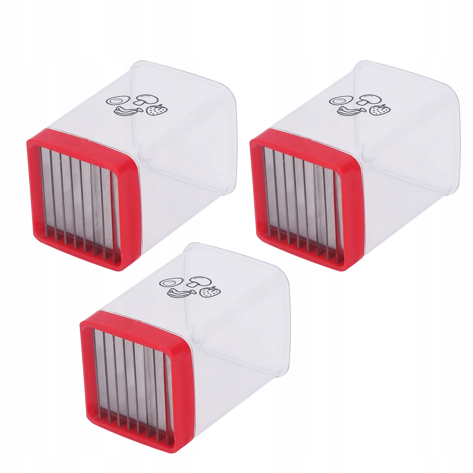 2. Дизайн нижньої тарілки: яйцерізка ідеально підходить для будь-якої кухні, а її стильний дизайн не тільки додає стилю, але й гарантує, що вона не займе багато місця на вашій стільниці. Включена нижня притискна пластина запобігає забрудненню обробної дошки та дозволяє легко розміщувати нарізані фрукти чи овочі. Завдяки 8 лезам із нержавіючої сталі різак для чашок ріже у 8 разів швидше, ніж за допомогою ножа, заощаджуючи час і зусилля на кухні.