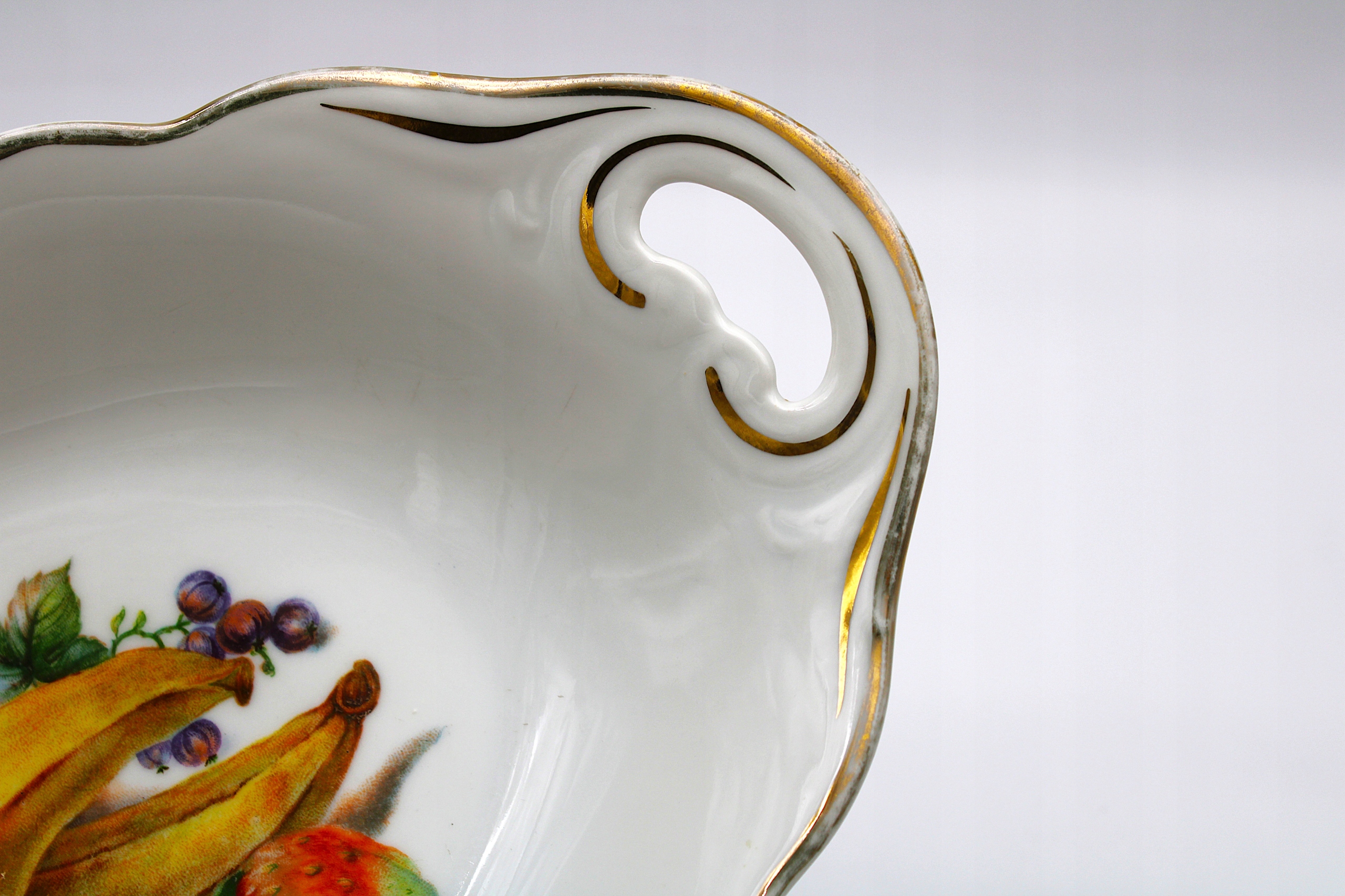 Я РЕКОМЕНДУЮ СТАРОВИЙ АНТИКВАРНИЙ ЯРДІНЬЄР - ФОРФОРОВА ПЕКАРКА ДЛЯ ФРУКТІВ СТАРА СІЛЕЗІЯ, 1920-ті роки, ВСІ ДЕКОРАЦІЇ ВРУЧНУ, СТАН ТАКИЙ ЯК НА СКАНІ, ЛИШЕ ПРИРОДНІ ТИМЧАСОВІ потертості на золотому покритті