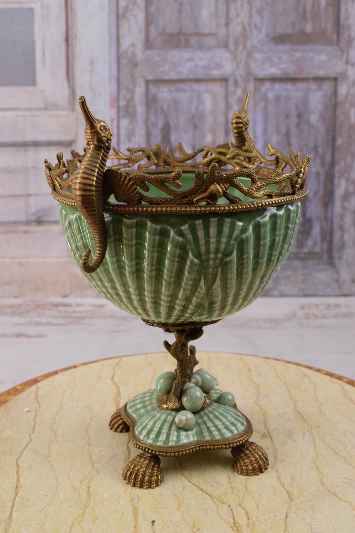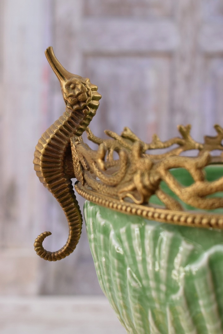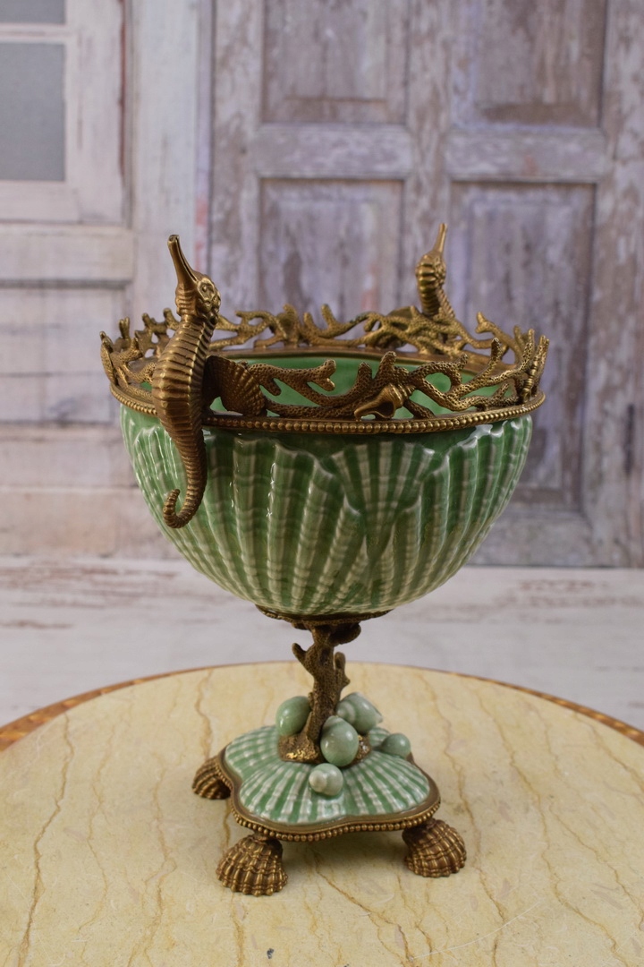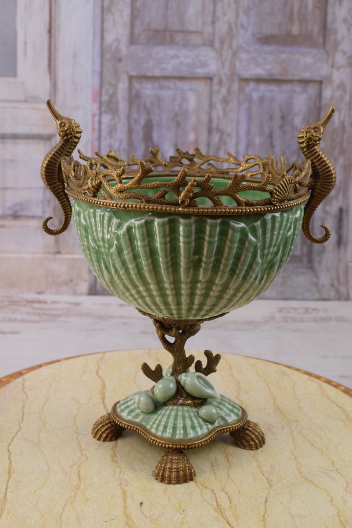 Фруктова тарілка Green Jardiniere - Emerald Porcelain + Bronze Sea Horse