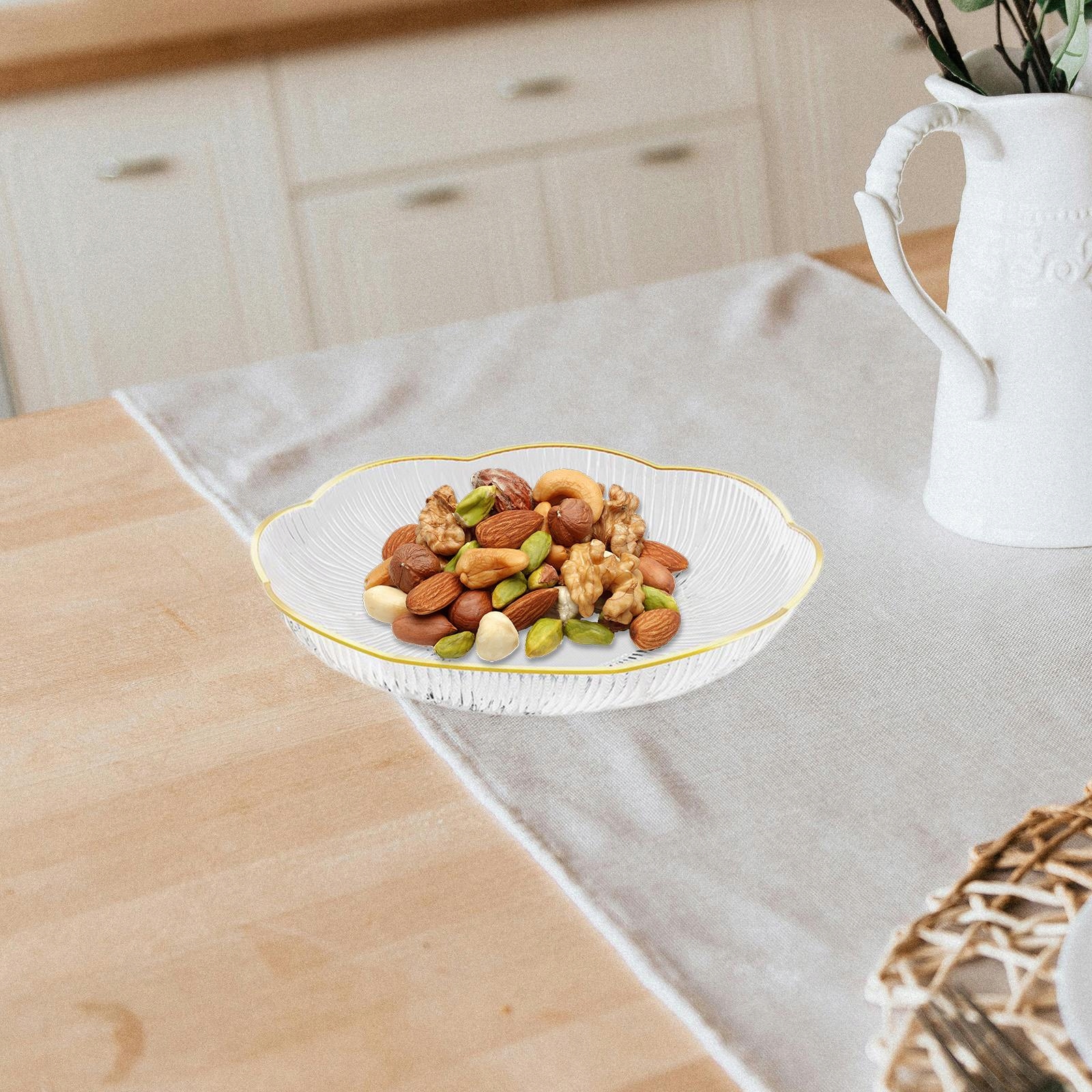 [Елегантний дизайн]: Ця фруктова плита має складні краї у формі пелюстки, додаючи трохи розкоші до кожного середовища, прекрасно доповнює текстуру, завдяки якій це око -затуманення центрального елемента вітальні