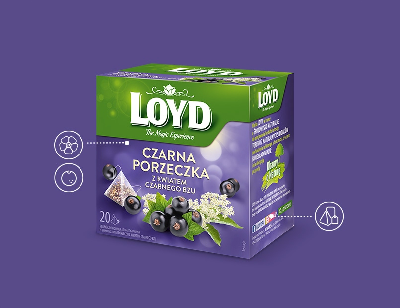 Два чорних фрукти в одному настої створюють гармонійну суміш. Чорна смородина і чорна бузинаще одна незвичайна пропозиція від LOYD створено для людей, які прагнуть відкривати нові смаки. Задовольніть свою цікавість і спробуйте зараз!