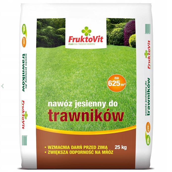 ФруктоВіт ПЛЮС осіннє добриво для газонів містить мінеральні речовини, які забезпечують поживні потреби газону восени та забезпечують кращий старт з ранньої весни. Знижений вміст азоту подовжує вегетаційний період і забезпечує гарний вигляд газону до пізньої осені. Проте підвищений вміст калію сприяє кращій зимівлі та підвищує стійкість газону до хвороб. Ми особливо рекомендуємо використовувати добриво для декоративних і представницьких газонів.