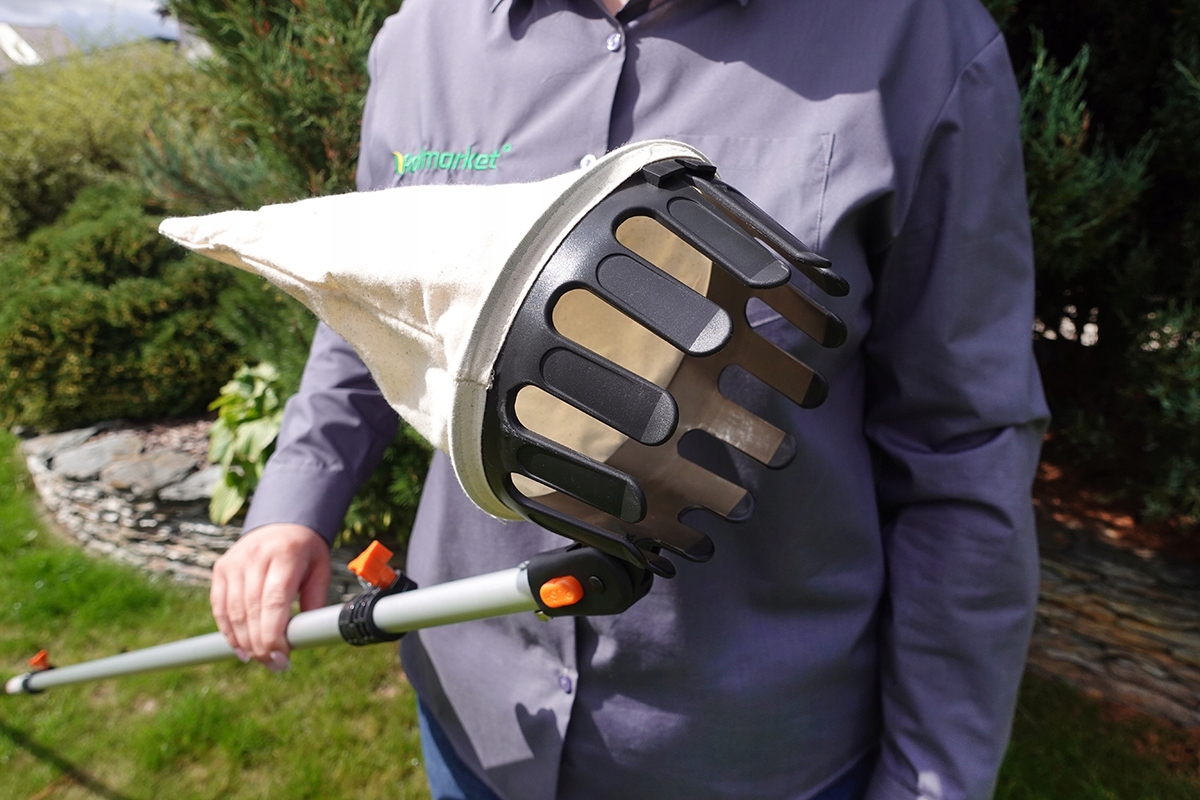 Інструмент, який дозволяє легко збирати фрукти з дерев без використання драбини - форма гарантує, що фрукти потрапляють безпосередньо в мішок - мішок виготовлений із міцної бавовни - він має ріжучий ніж, щоб його було легше витягувати плід з дерева.