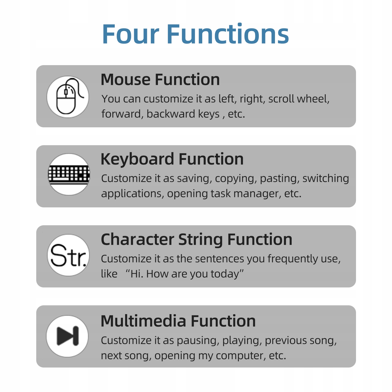 1. Ви можете налаштувати кнопку, щоб отримати функцію миші, функції клавіатури, функції рядка символів і функції мультимедіа.