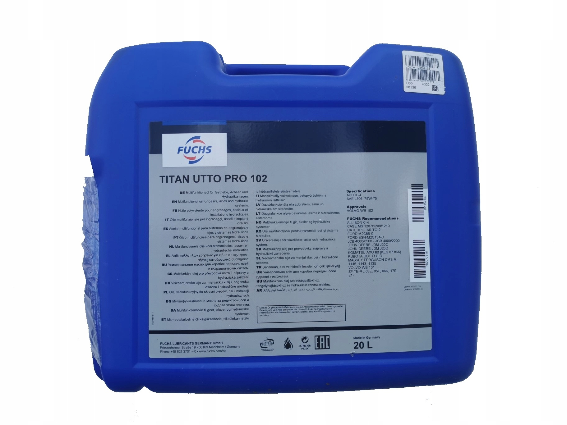 Titan Utto Pro 102 - це багатофункціональна масло найвищої якості, спеціально розроблена для останніх вимог Volvo WB 102. Titan Utto Pro 102 заснований на ретельному виборі базових масел та технології добавки, що гарантує відмінний захист від споживання, хороших в'язких та температурних характеристик та відмінних властивостей тертя. Крім того, він забезпечує чудові антикорозійні властивості та захищає від окислення та термічної деградації. Завдяки значній кількості Titan Utto Pro 102, його можна використовувати у багатьох різних програмах.