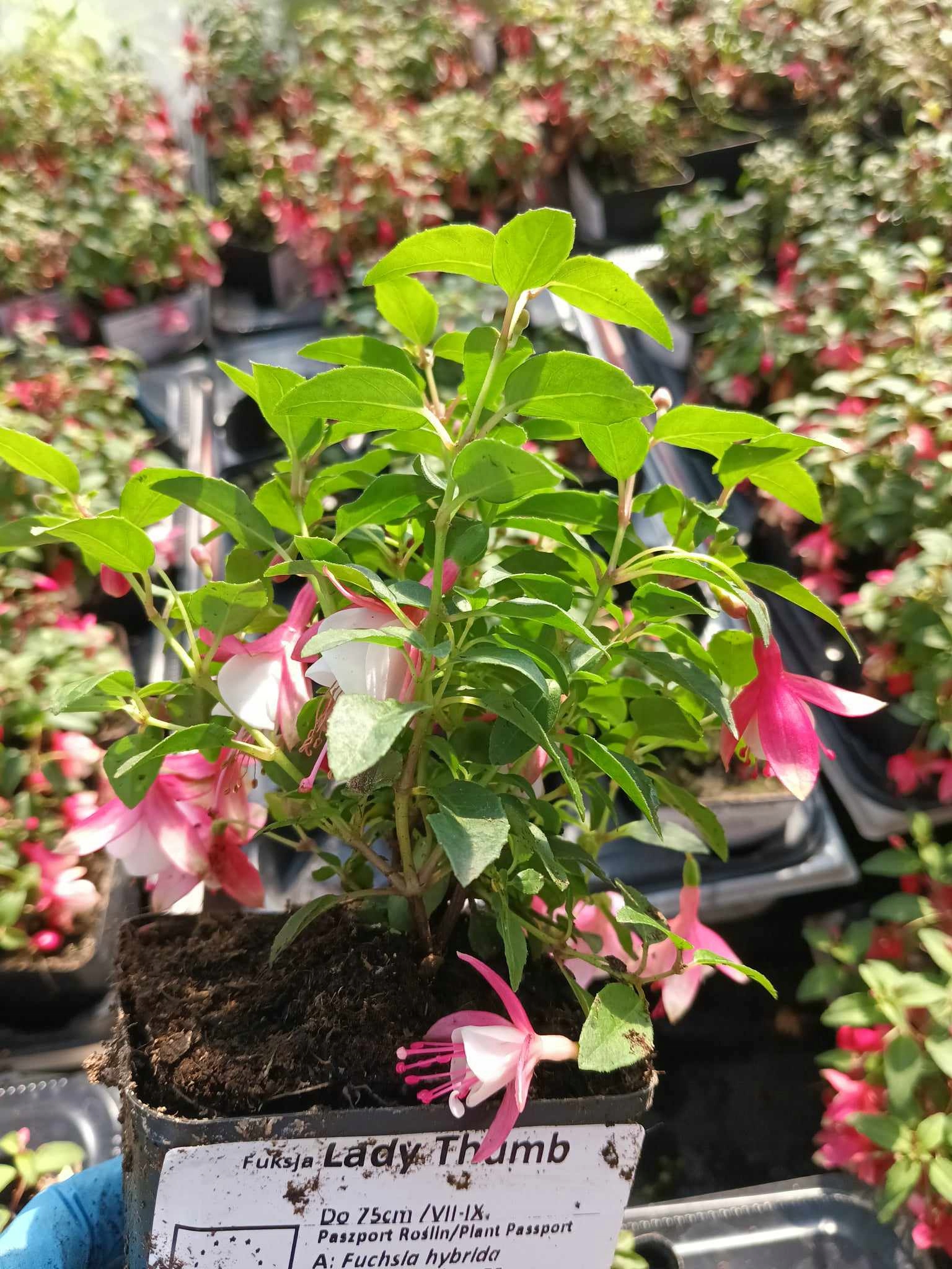 Fuchsia Lady Thumb створює компактну, дуже гіллясту форму і зазвичай досягає 30-40 см у висоту (хоча власник сорту заявляє до 75 см, в нашому кліматі це малоймовірно). досягти стільки) і приблизно 45-50 см в діаметрі.